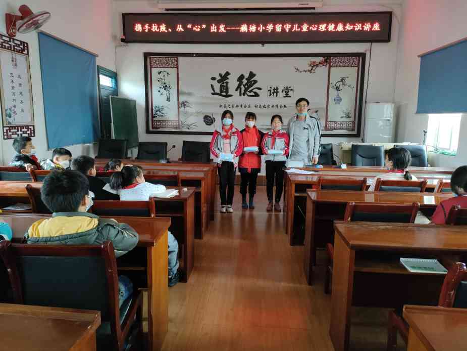活动中,管理员老师举行了一场心理健康教育知识讲座,利用播放心理健康视频、讲心理小故事等方式帮助孩子们正确认识情绪,学会自我调节,从而缓解心理压力,解除心理困惑,构建积极的心理品质,同时还对个别孩子进行了专门的谈心谈话和心理疏导。活动最后,管理员老师为全体留守儿童一一发放了防疫口罩和图书材料,教导孩子们听从指挥,戴好口罩,不随意外出,做好自我防护。(图文:赵悦 审核:罗培齐)