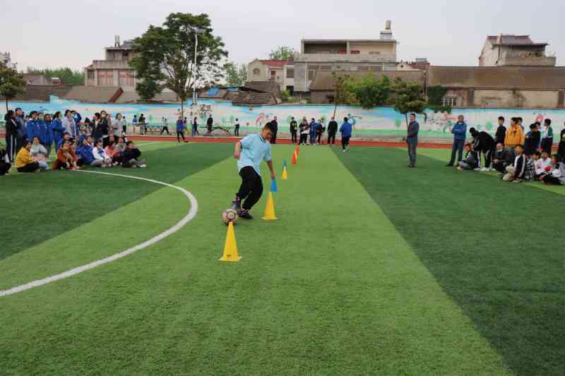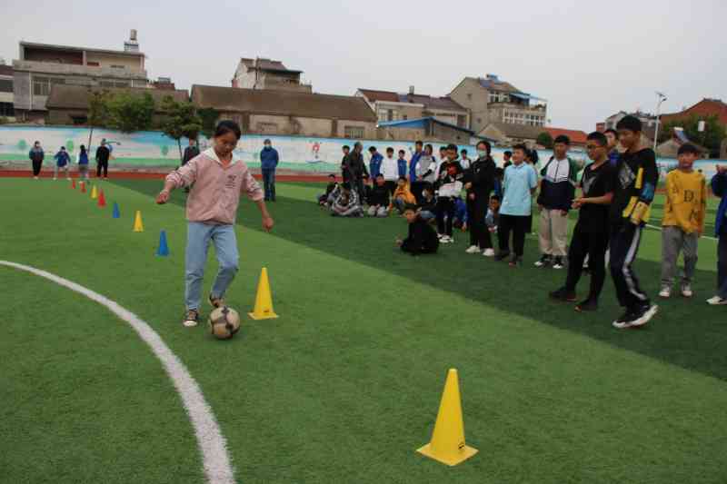 ~ 赛前,各班高度重视,纷纷挑选精兵强将组建参赛队伍,体育老师高礼虎依次向各班详细讲解了比赛规则并做示范。比赛中,竞争更为激烈,小小的足球在运动员娴熟的运球技巧中不断在栏杆中穿梭,留下一条美丽的弧线,各个班级的运动员们你追我赶,充分发挥自己的拨球、运球水平,当足球绕到最后一杆时,同学们不时地调整射门的角度,只为一个精彩的射门。当足球被精准地射入球门时,人群中就爆发出阵阵喝彩。啦啦队的呐喊声、助威声此起彼伏,响彻整个校园。