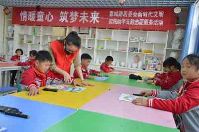 社区和学校助学支教志愿者在指导学生绘画