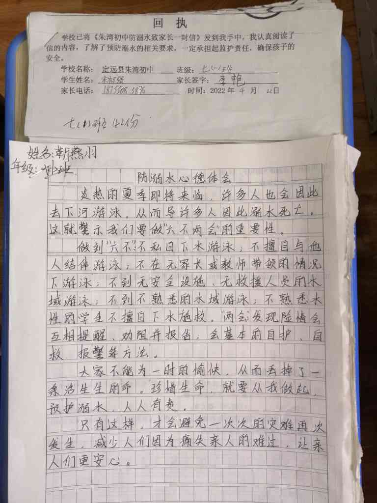 天气逐渐炎热, 为了确保同学们的生命安全,防止溺水事件的发生,4月份以来,定远县朱湾初中举行了防溺水安全系列宣传教育活动。