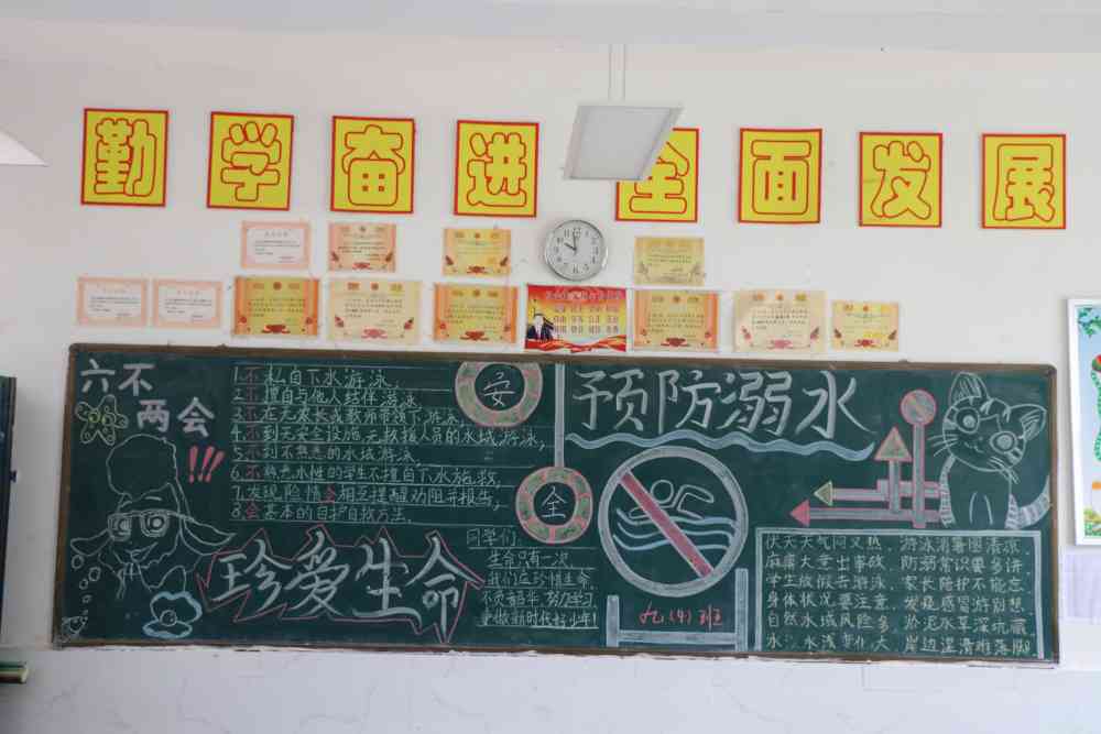 ~ 生命高于一切,安全重于泰山,从检查结果来看,该校各班高度重视防溺水宣传工作。各班同学在班主任的精心指导下,紧紧围绕“珍爱生命,预防溺水”主题,广泛搜集资料,进行版面设计、图案构思和内容创意。各班级所出的防溺水黑板报不仅主题鲜明,内容丰富,图文并茂,而且生动形象地展现了珍爱生命,预防溺水的重要性,普及了溺水自救知识、互救能力。