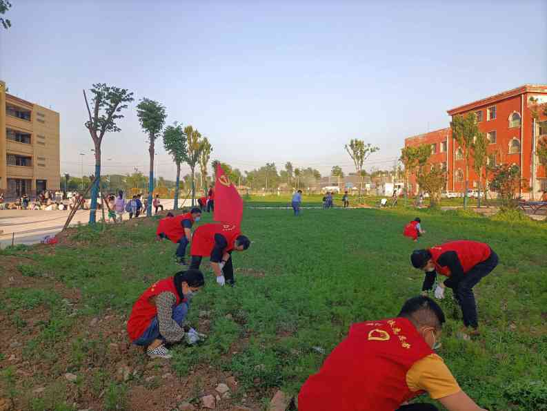 ~ 全体共产党员来到了劳动教育实践基地,在两个小时的劳作里,党员同志们或用锄头锄草,或用手拔草,虽感劳累,但看到野草清理掉后清爽的地面,大家都很有成就感。