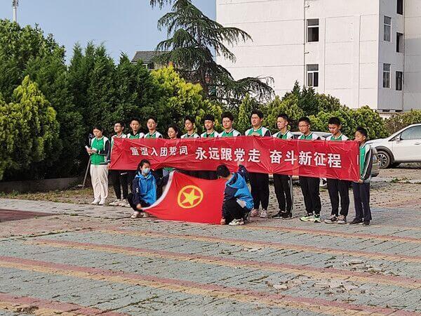 ~ 5月 9日,定远县张桥中学在楼前广场举行“永远跟党走,奋斗新征程”入团宣誓仪式,共有18名新团员参加了此次宣誓仪式。