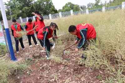 近日,教育部发布《义务教育劳动课程标准(2022年版)》,从今年秋季开学起,劳动课将正式成为中小学的一门独立课程。为了将劳动课落实到实处, 5月10日,定远县天河初中组织学校志愿服务队来到学校劳动实践基地开展油菜籽收割活动。让学生在收割劳作中领悟收获的不易,体验“双减”的快乐。