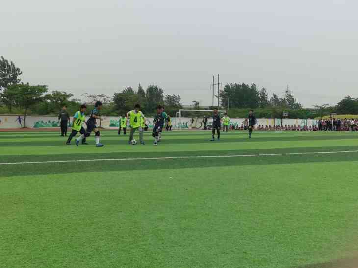 ~ 四(7)班和四(8)班拉开揭幕战,随着花园湖小学校长冯军熙开球,裁判员钱家坤老师的一声哨响,一场激烈的比赛开始了。比赛中,四(7)班和四(8)班的小运动员们在绿茵场上来回奔跑,盘球、传球、射门、扑球…….一个个精彩的动作,赢得大家阵阵掌声。赛场边,啦啦队员们的“加油!加油!”此起彼伏,响彻整个校园。此次比赛充分展现出了团队协作精神和积极向上的精神面貌。