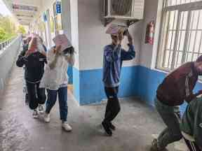 ~ 9时40分,警报声在校园响起,正在上课的老师组织学生拿起书包、书本放在头上,下蹲钻进课桌下就近避险。然后老师第一时间组织学生进行平安分散,学生们迅速离开座位,用书本等物护住头部,在班主任的统一指挥下,沿着各楼层既定的分散路线,快速、有序地从课堂向楼前广场聚拢,整个历程快而不乱,严谨有序,没有呈现跌倒、受伤等状况,用时不到两分钟。到广场后,教师迅速清点人数,肯定平安后并上报学校负责人。在整个演练历程中,做到分工明确、责任到人,确保学生平安撤离。