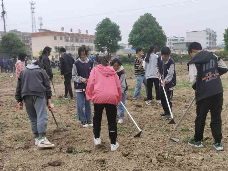 为培养学生热爱劳动的品质和动手实践能力,落实“双减”政策,深入推进“五项管理”,培养学生热爱劳动,养成良好的劳动习惯和自律品质,5月13日下午,定远县严桥学校开展劳动实践活动。该校后操场的劳动实践基地里呈现出一派繁忙的景象。在各班主任的带领下同学们积极参与到翻地、种花生、排葱、种大豆等的实践体验中。