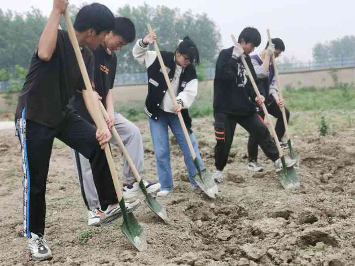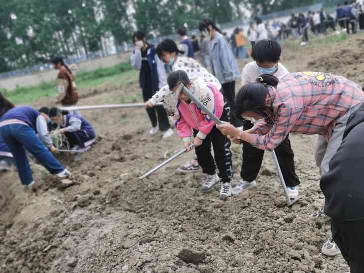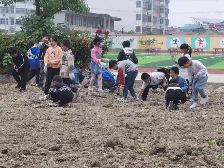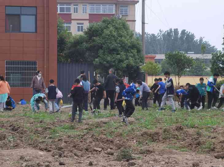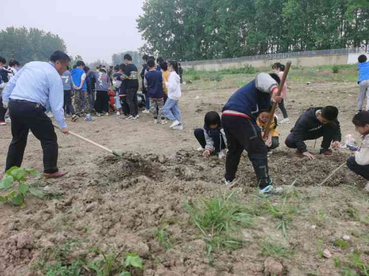 在劳动的过程中,老师们耐心地讲解翻地的注意事项,手把手地引导同学们如何使用铁锹、锄头,如何手脚并用,在老师的引导下,同学们各个信心满满、热火朝天地行动起来。大家的动作有模有样,而且越来越熟练,很快就翻好了大块地,种了花生,大豆等。虽然鞋子弄脏了,汗水浸湿了衣衫,甚至稚嫩的小手起了水泡,但他们的脸上写满了兴奋与喜悦。