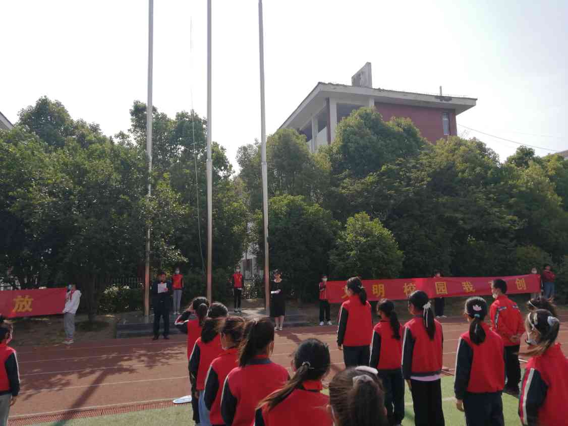 ~ 本次升国旗仪式活动由该校政教处和少先队负责筹划,少年宫朗诵社团辅导员杨淑贞老师担任主持人。该校党支部书记、校长姜林皇同志作了题为"文明礼仪在校园"的讲话。姜校长围绕言行举止、讲究卫生、爱护公物、节约资源等方面,对学生进行谆谆教诲。讲话最后他向同学们发出号召:同学们,让我们携起手来,从现在做起,从自己做起,从身边的小事做起,养成良好的文明习惯,争做文明学生!