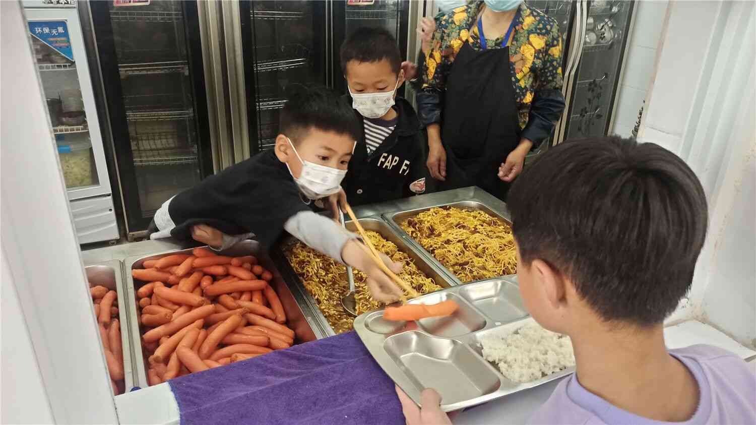 ~ 定远县永康小学教育集团部分少先队员走进学校食堂,干一些力所能及的活,亲身体验食堂员工的辛劳。