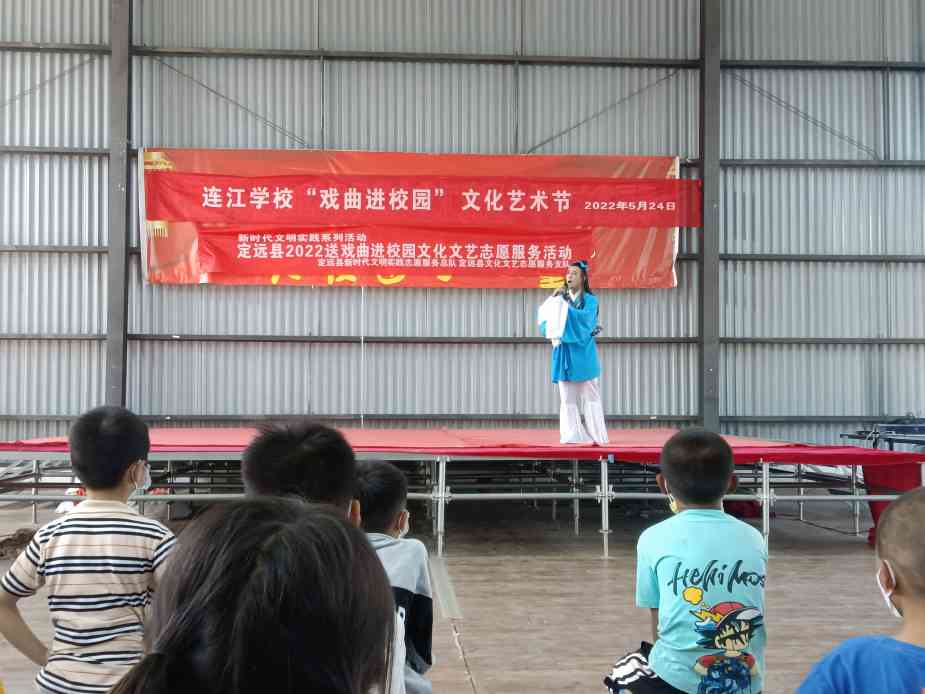 ~ 活动由定远县新时代文明实践志愿服务总队、定远县文化文艺志愿服务支队、连江学校团少委、连江学校乡村学校少年宫办公室联合举办。本次戏曲艺术节活动形式多样,有爱国主义题材《江姐》插曲片段、有浪漫的民间神话故事《天仙配》选段等,表演艺术家还向大家讲授传统戏曲文化知识,指导穿戏服、唱戏词、摆姿态等。现在的青少年习惯去追随流行歌曲,却忽略了传统文化艺术的魅力,通过本次活动,使学生们感受不一样的艺术精髓,提高学生对传统文化的认识和实践。 (张 东)