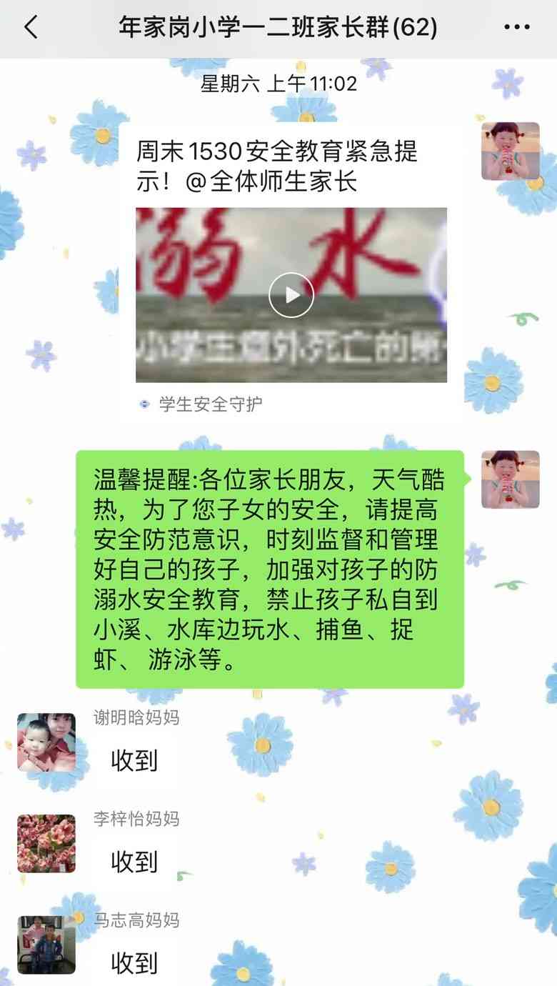 该校还通过广播站宣传,每天三分钟、每周五放学前五分钟防溺水安全提醒,以及节假日在家长微信群推送防溺水安全提醒等形式,严防离校期间溺水事件的发生。
