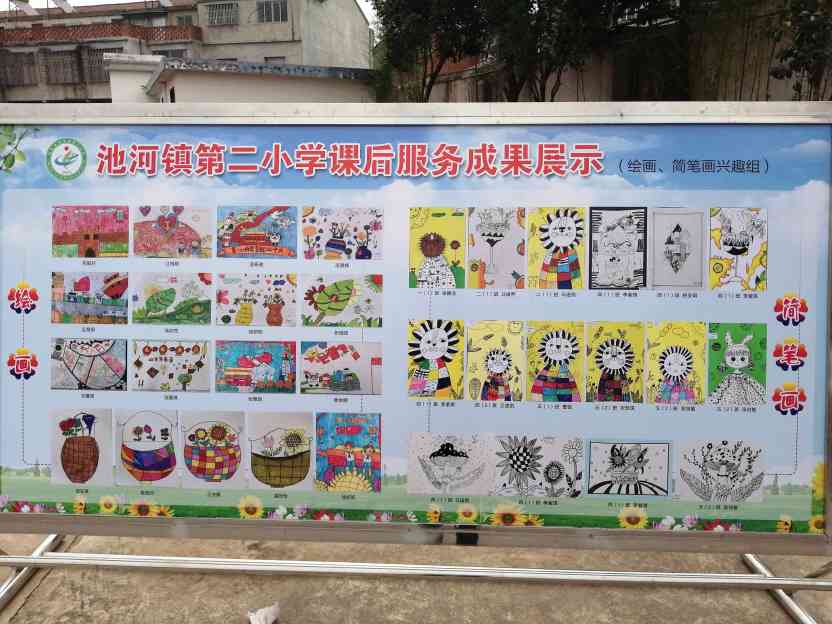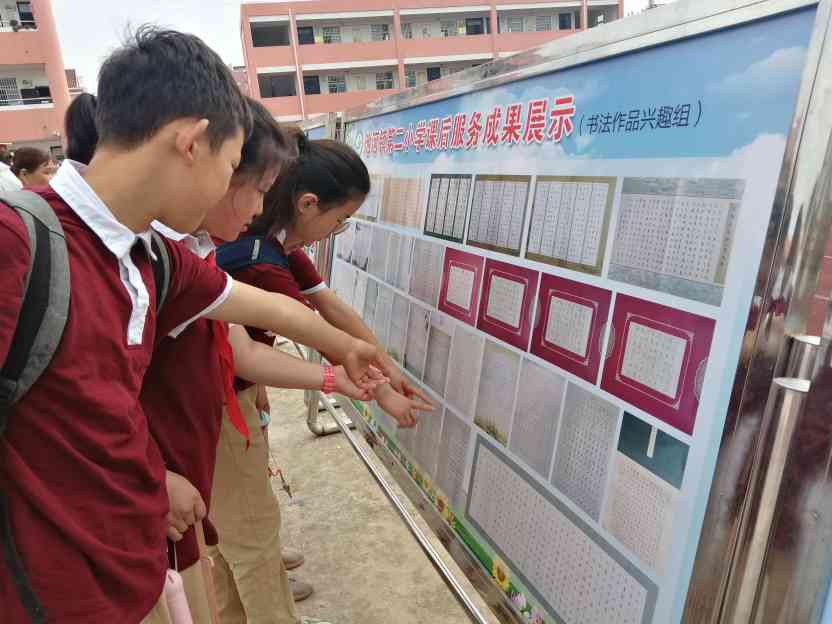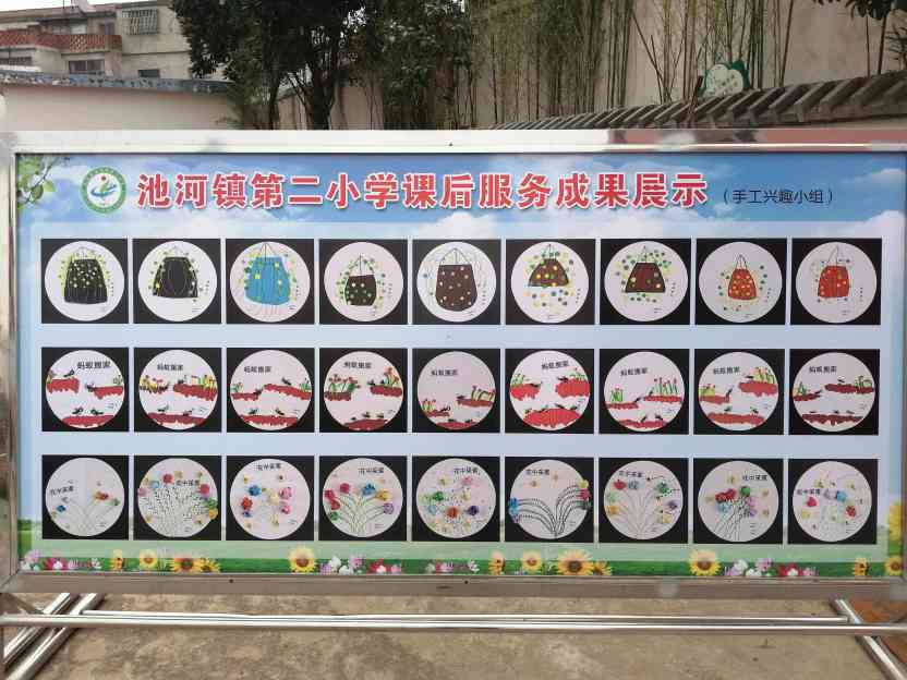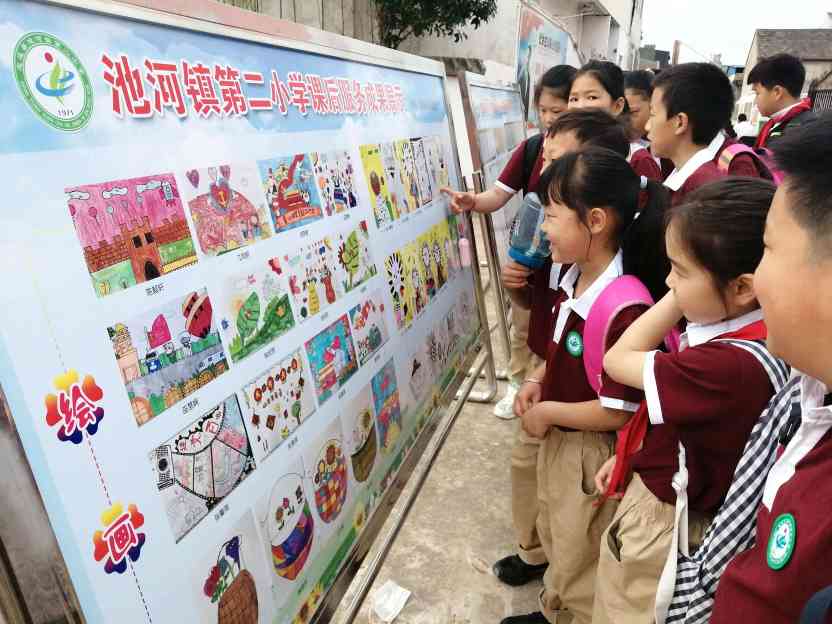 ~ 6月1日,定远县池河二小举办了“课后服务成果展示”活动,展牌前,大家叽叽喳喳地围在一起,驻足观看着那一件件笔画规范的书法作品、色彩艳丽的绘画作品、精彩别致的手工作品,饶有兴趣地评论着,赞叹着,为平静的校园增添了一道亮丽的风景。