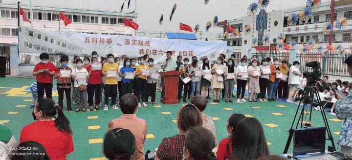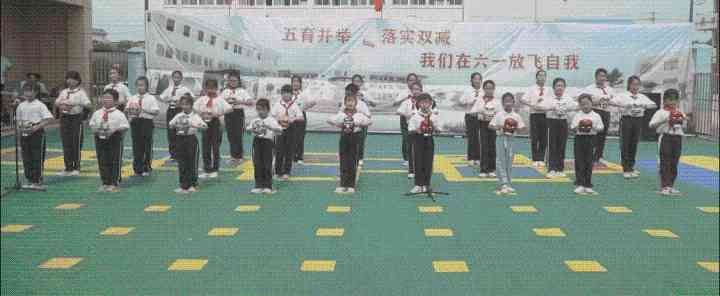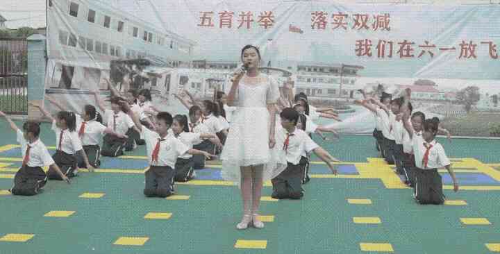 ~ 表彰仪式结束后,文艺汇演在《精忠报国》的课桌舞中拉开序幕。伴随着悠扬、欢快的音乐,孩子们和老师陆续登上舞台,整场演出的节目丰富多彩、形式多样。精美绝伦的舞蹈、引人入胜的歌声、妙趣横生的三句半、意味深长的情景剧,无不误博得在场所有观众此起彼伏的掌声。从孩子们甜美的歌声和可爱灿烂的笑脸中,感受到他们愉悦的心情,感受到他们在这一天是最快乐的。他们尽情的唱啊、跳啊,用动听的歌声和优美的舞姿来表达内心无尽的的欢乐。演出场上,歌声、笑声连成一片。