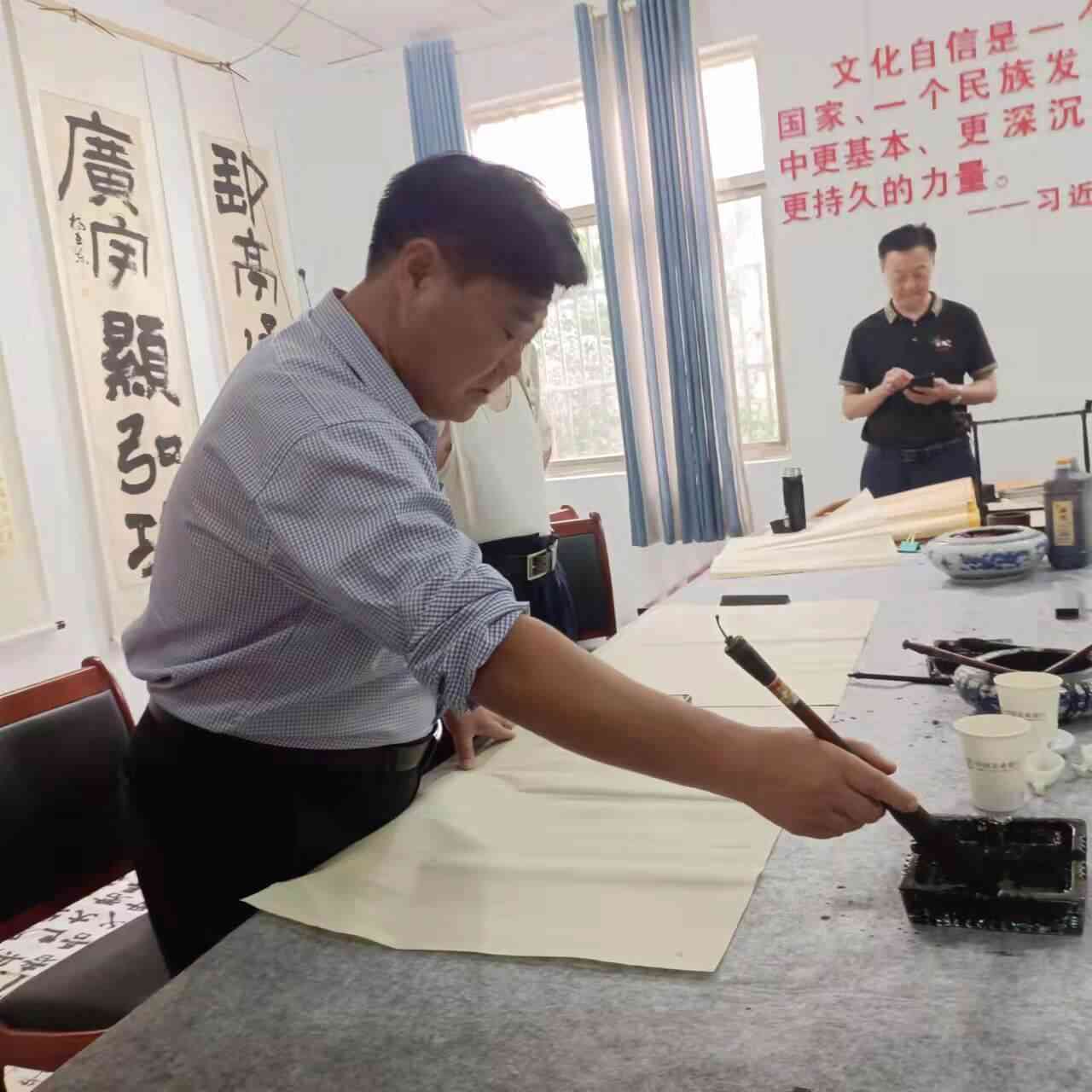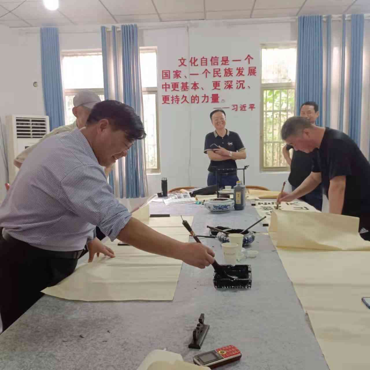 ~ 6月1日上午,定远县张桥镇文化站书画活动室里,近20名张桥镇老年人体育协会书法爱好者欢聚一堂,交流学习书法心得。