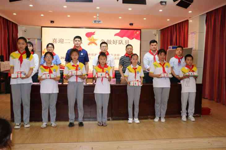 团县委副书记武赟,团县委副书记荣智,团县委副书记杨婉莹,新区实验学校教育集团党支部书记、校长李永书,校区负责人吴德清,副校长周琼,新华书店青年党员周芝辉,永康路消防站青年党员官兵檀凯,县科协青年党员李嫚,县检察院青年党员周欢欢,新区实验学校教育集团少先队大队辅导员汪华以及学校全体新入队少先队员参加了此次活动。