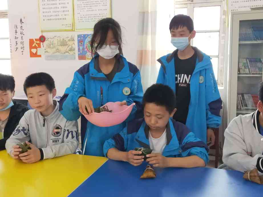 活动中,老师们给同学们讲解了端午的由来及风俗,让同学们认识到端午节的文化内涵及过端午的意义。随后,在老师们的指导下,同学们兴致勃勃,相互学习,通过配食材、折粽叶、装糯米、系丝线等环节,一步步完成了粽子的制作过程。在大家的齐心协力配合下,一个个饱满立体,散发着清香的粽子呈现在大家面前。现场欢声笑语,洋溢着浓厚的节日氛围。最后大家把带着满满爱心的粽子,分发给留守儿童和镇敬老院的独孤老人,为他们送上了节日的问候与祝福。