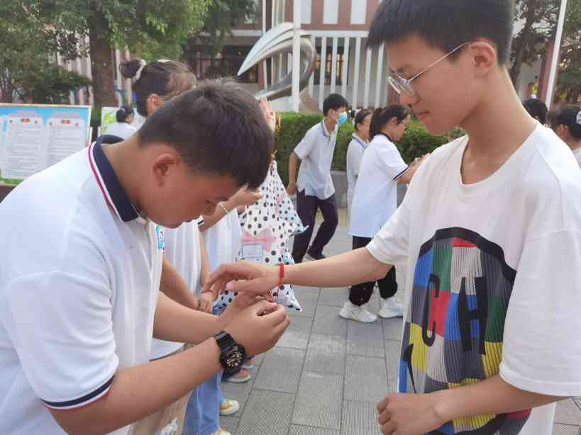 ~ 七八年级的孩子们有的从家里带来热气腾腾的粽子,有的亲手制作了香囊、手链、贺卡等,将自己对学长们的祝福融进了每一份精心准备的小礼物中,祝愿师哥师姐们中考一切顺利,金榜题名。收到祝福的九年级学生纷纷表示:“这真是意外的节日惊喜!会把这份情谊化为中考的动力,一起加油!”