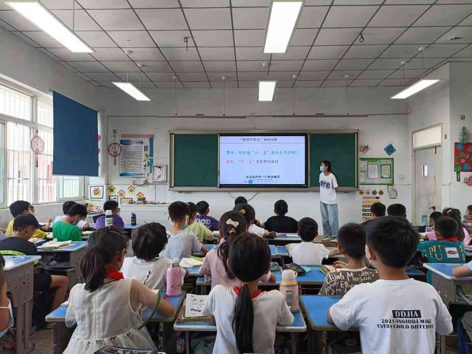 ~ 该校充分利用电子屏、黑板报、宣传栏等载体,宣传世界环境日主题和有关环保知识。6月2日,各班召开主题班会,上一堂环保课,开展环保知识问答等,向学生普及了环保知识,列举了威胁人类生存的十大环境问题,引导学生增强环保意识,主动参与环保行动中来。