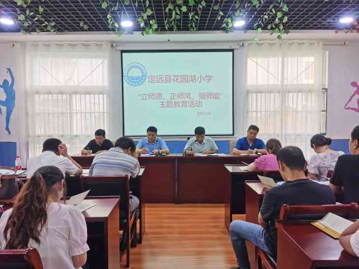 ~ 为进一步加强学校师德师风建设、规范教师职业行为,明确师德底线。6月6日,定远县花园湖小学组织全体教师开展“立师德、正师风、强师能”主题教育活动,安排部署师德师风建设提升年活动,对2022年师德师风建设工作进行再动员、再部署、再安排。学校党支部书记、校长冯军熙主持会议,全体教师参加。
