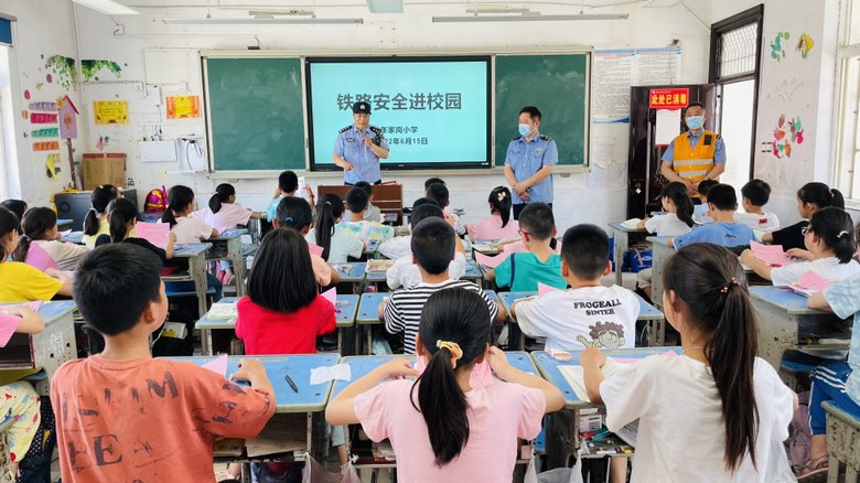 定远县年家岗小学地处铁路附近,学生上下学存在安全隐患。为提高学生爱路护路意识和安全法治观念,6月15日上午,蚌埠铁路公安处水家湖站派出所联合年家岗站来到年家岗小学,开展铁路知识宣传教育活动。