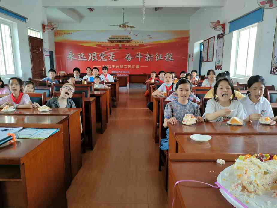 2022年6月21日中午,在校领导的支持下,定远县藕塘小学全体留守儿童欢聚一堂,一起庆祝“集体生日”,活动由留守儿童之家管理员李伟伟主持。