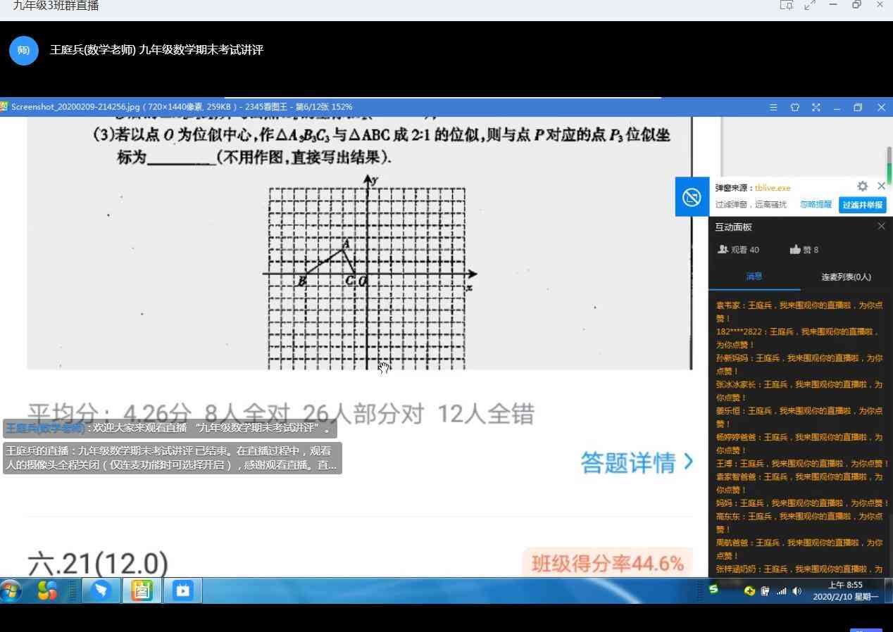 疫情发生后,九(3)班班主任、党员教师王庭兵老师率先开展线上教学尝试,从2月1日开始,就在自己所带的那个班级用微信开展寒假作业在线检查与答疑。为了更有序开展远程教学互动,他组建了本班钉钉群,把科任老师、家长拉进群,为“空中课堂”有效发挥作用保驾护航。据王老师介绍,他主要通过以下途径加强对学生的监督:一是每天用父母手机按时打卡签到;二是要求学生自己将家长签名后的作业发到群里;三是不定期电话回访家长,了解孩子真实学习情况等。 疫情就是命令,教育就是责任。当上级部门发出“停课不停学”的要求后,池河中学教导处副主任曹玉海积极积极响应,作为一名年轻的党员,曹玉海老师在党支部书记欧健海带领下,一方面严防死守抗击疫情,一方面撰写线上教学实施方案,逐一电话落实教师,制定课程表,规划教学内容,组织课堂教学管理,落实课后评价等,他在自己的岗位上,发挥着共产党员的先锋模范作用。 “线上课堂核心是老师,关键是学生,保障是家长,只有齐头并进,线上教学才会出成绩。”,共产党员、池河中学团委书记李发宝通过钉钉授课后第一时间分享了自己的线上教学感受。一名党员就是一面旗帜。“班主任是学生们的主心骨,要正确引导学生认识新冠肺炎疫情,做到疫情面前不畏惧不轻视。时间是宝贵的,要告诫学生切不可虚度光阴,要合理安排好疫情期间的学习和生活。”,八(1)班班主任,入党积极分子肖昌顺对学校战疫情“停课不停学”有更深的理解。