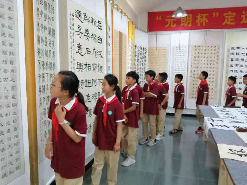~ 6月22日,定远县池河二小组织学生参观了池河梅白鱼文化节书画展览。近百名师生兴致勃勃地前往展览馆,大家一到展览馆就被一幅幅精美的书法和绘画作品吸引,同学们流连在每幅作品间欣赏着,评说着,有的说,“哇,这幅字太漂亮了!”;有的说,“我知道这幅对联写的是什么地方。”“我喜欢这幅画!”还有学生大声惊呼: 哇,这幅字是我的老师写的,这幅字的作者就住在我家对面……展览馆的管理员耐心为他们讲解每幅作品诠释的含义,激发学生对艺术的热爱和对生活的感悟,一幅幅精美的书画作品吸引着每个人的眼球。
