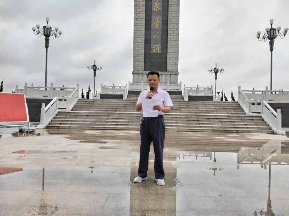 ~ 烟雨蒙蒙,青山肃穆。七一前夕,定远县藕塘中学党支部组织党员、团员、少先队员来到藕塘革命烈士陵园,瞻仰人民英雄纪念碑,回顾党的光荣历史,缅怀革命先烈的丰功伟绩。