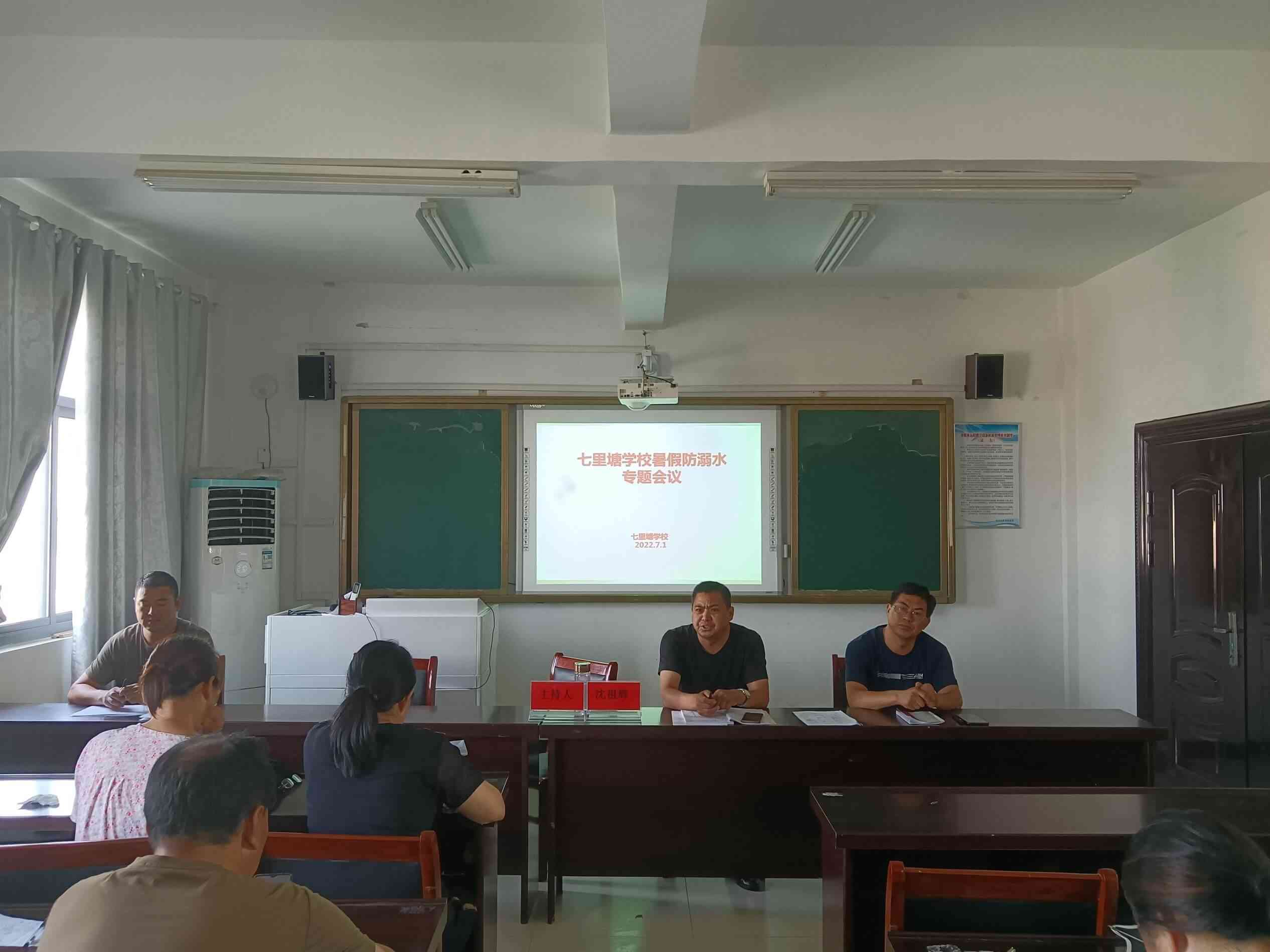每年暑期发生的青少年溺水事件给学校、家长、社会敲响了生命的警钟。在暑假来临之际,为切实加强防溺水教育,提高学安全意识和自防、自护、自救能力,确保广大学生生命安全,7月1日上午,定远县七里塘学校召开了暑假防溺水专题会议,对防溺水工作再进行全面安排部署。会议由该校党支部书记、校长沈祖辉主持,全体教师参会。