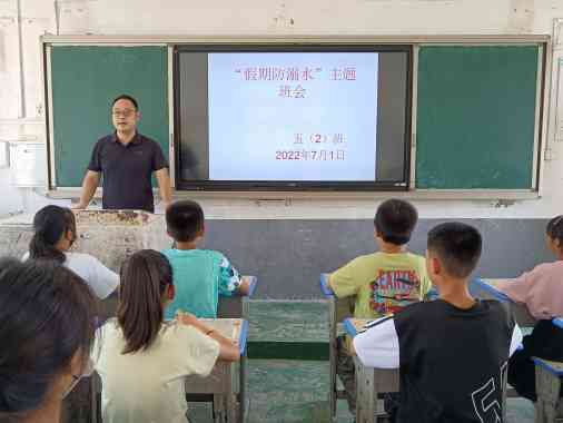 随后,各班开展“假期防溺水”安全教育主题班会活动。班会课上,各班班主任结合本班特点,采用多种形式的教育方式围绕以下三个方面开展:一是预防溺水的措施;二是溺水时的自救方法;三是发现有人溺水时的救护方法。