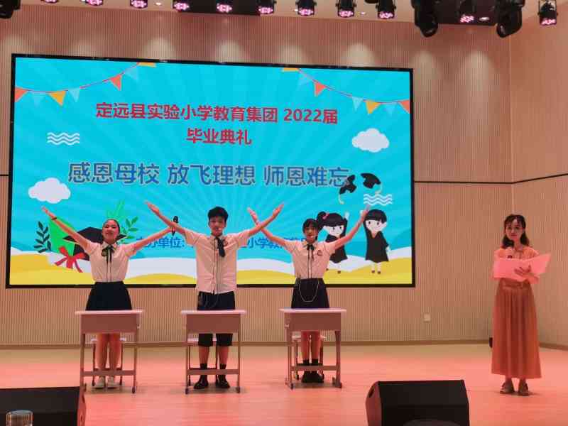 7月5日上午,定远县实验小学教育集团2022届毕业典礼在东兴路小学报告厅举行。来自集团学校六年级的全体师生与校领导们一起话别童年,踏上成长新历程。毕业典礼上,孩子们围绕感恩母校、感谢老师,带来了一个个精彩的文艺节目表演。