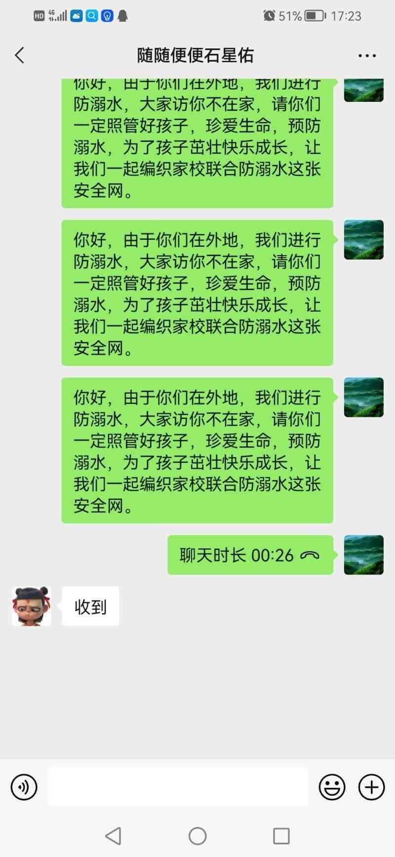 走访中,教师们冒着炎炎烈日走家串户,深入学生家中,认真细致地了解学生在家学习和生活情况,宣传防溺水安全教育的重要性和防溺水相关知识,要求学生做到“六不”“两会”,家长要“四知道”切实做实做细,杜绝和遏制学生溺水意外事故发生,积极配合学校做好防溺水等安全教育工作。为做到不漏一户、不漏一人,外出学生教师通过电话、短信、微信等渠道对学生家长进行了防溺水宣传教育并做了详实的访问记录。
