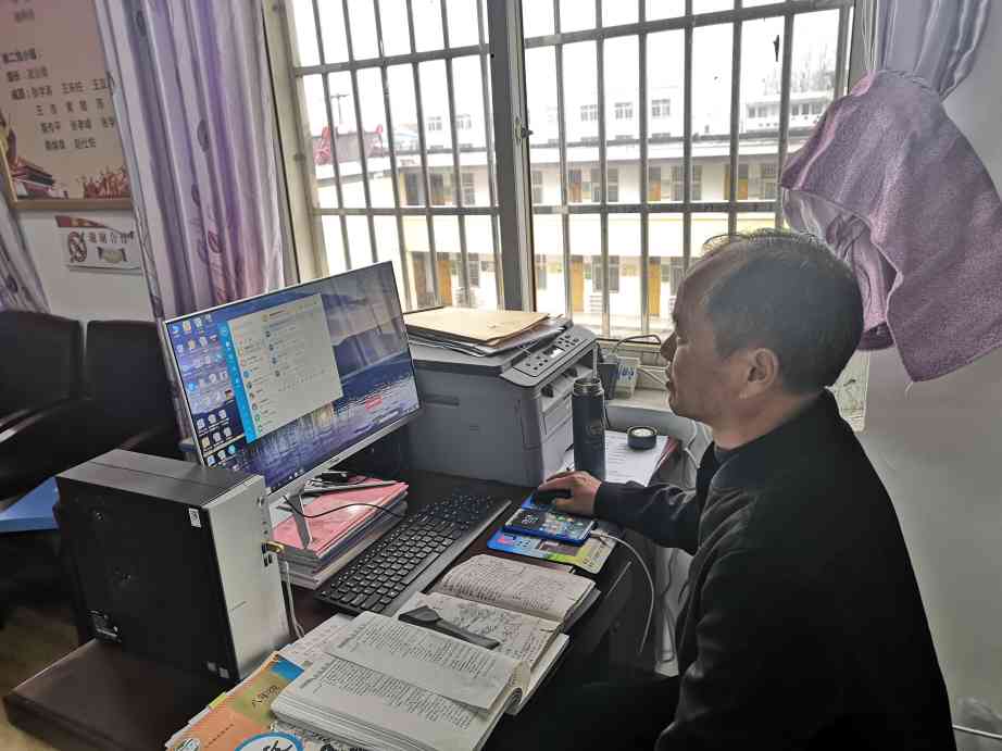 活动开展以来, 困在异地的老党员何金成、王来柱克服了手头一没课本,二没电脑的困难,用手机进行线上教学。党员教师黎庆兵、凌治德、武波、王友志、潘昌敏等同志如今却成了线上教学的主播。在他们的先锋模范作用感召下,全体教师齐上阵,截止目前三个年级课程已全部开足开齐。直播收看率达95%以上。除完成线上教学任务外,还积极开展线上答疑,宣传疫情防控方面知识。并与家长个别沟通,督促学生规范作息,确保学生在家学有所得。(凌治德 )