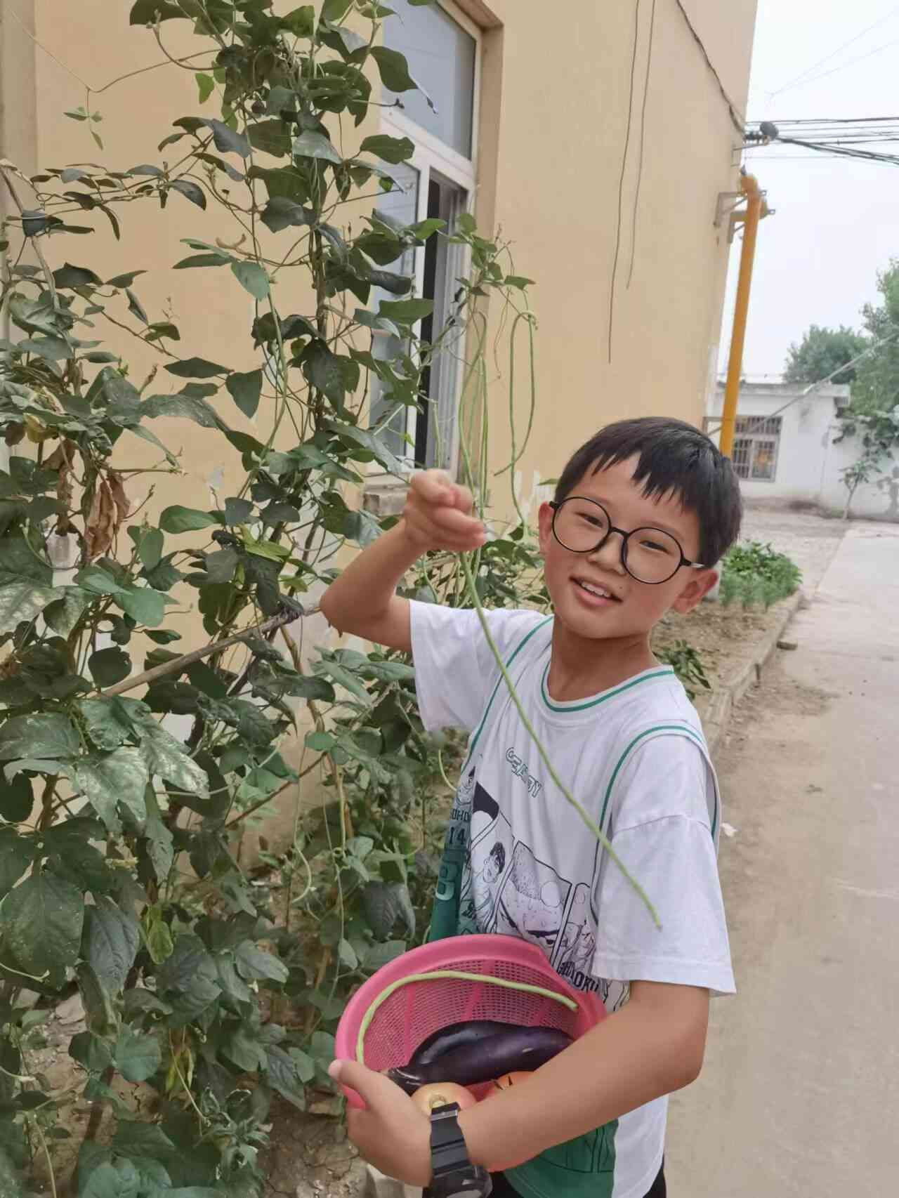 ~ 大自然是精彩、生动的课堂,少先队员们随父母走进菜园,豆角、瓜果长势喜人,茄子、辣椒挂满枝头,各色蔬菜让孩子们挑花了眼。不一会儿,菜篮里便满满当当。