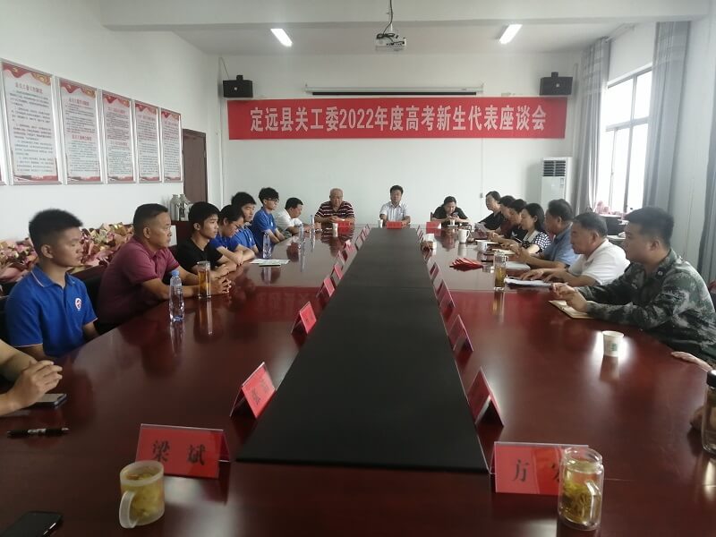 ~ 7月29日,定远县关工委召开2022年高考新生代表座谈会。定远县关工委、县人武部、县教体局关工委、县救助特困学生协会相关领导,定远中学、英华中学负责人,录取北京大学、清华大学和军事院校的学生代表参加了座谈会。县关工委主任徐传斌出席会议并讲话。
