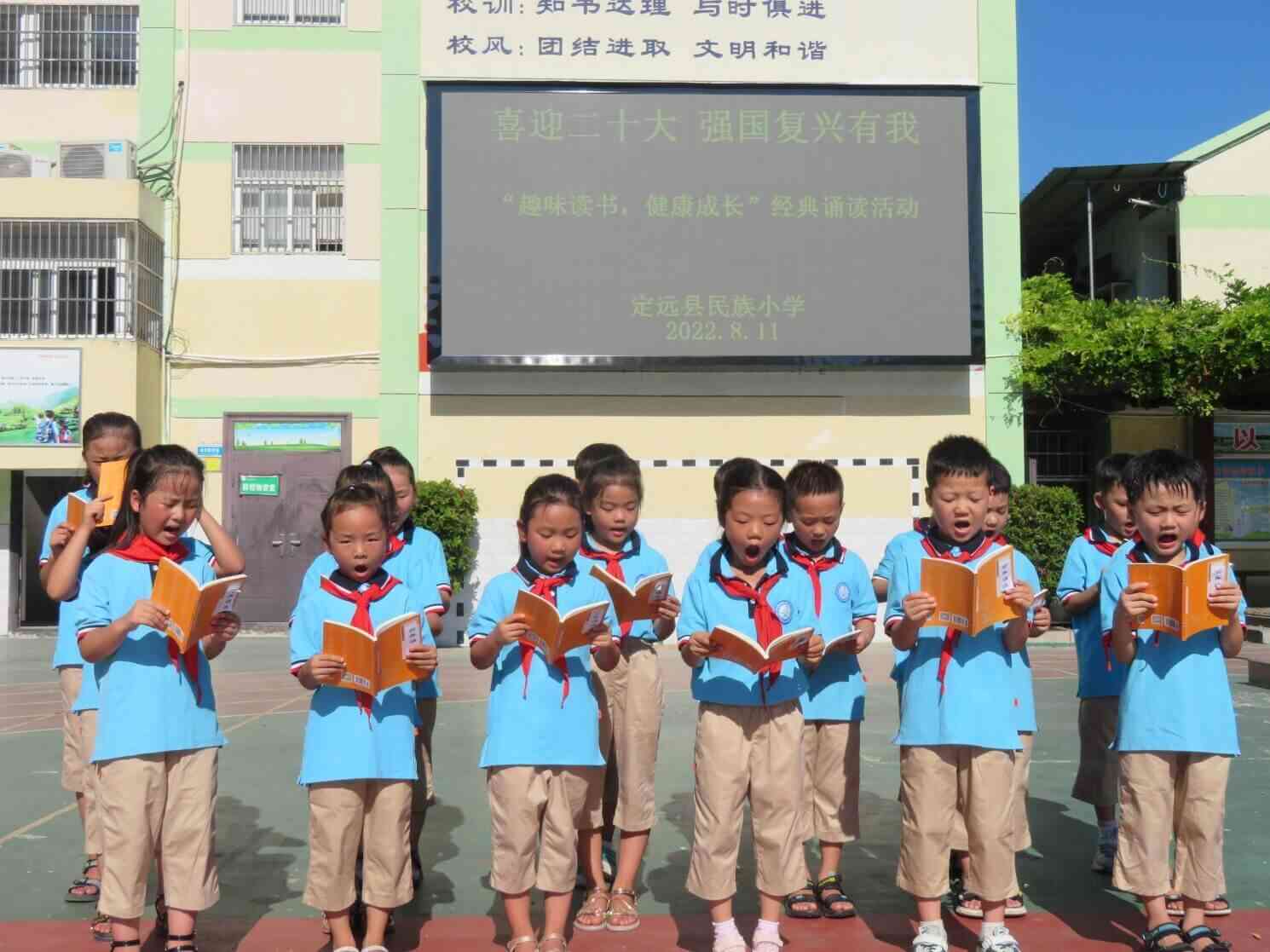 8月11日,定远县民族小学举行了“喜迎党的二十大 强国复兴有我,趣味阅读,健康成长”经典诵读读书交流会,该校经典诵读指导教师和上学期各班获得“经典诵读之星”的学生代表共30多人参加了活动。