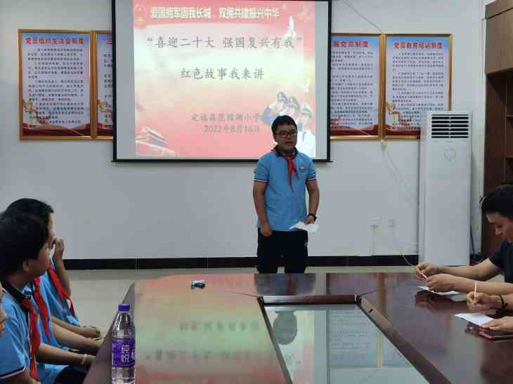 ~ 为进一步帮助广大少先队员树立听党话、感党恩、跟党走的坚定信念,传承红色精神,争做新时代好少年,8月16日,定远县花园湖小学开展“喜迎二十大 强国复兴有我”红色故事我来讲活动。