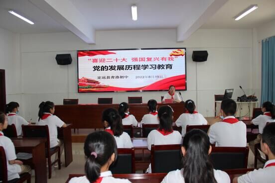 2022年8月19日,定远县青洛初中团委和少工委组织部分共青团员和少先队员参加“喜迎二十大 复兴强国有我”党的发展历程学习教育活动。