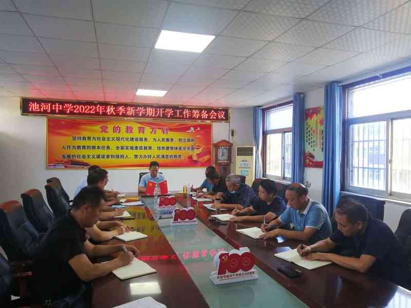 ~ 为做好2022年秋季开学前各项准备工作,确保新学期工作平稳有序进行,8月23日上午,定远县池河中学全体领导班子成员及各年级组长召开了2022年秋季学期开学工作筹备会议。会议由校党支部书记、校长欧健海主持。