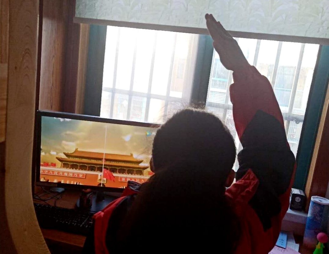 3月2日上午,定远县新区实验小学全体师生集结在一块块屏幕前,举行了以“致敬逆行者,立下凌云志,当好接班人”为主题的线上升旗仪式。