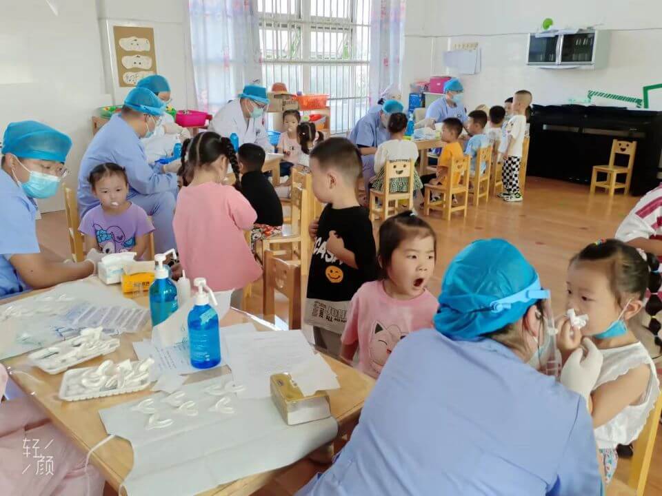 安徽省10项暖民心行动之—的健康口腔行动开始了。9月6日,定远县总医院口腔科主任医师一行十二人,走进县实验幼儿园开展小、中、大班幼儿涂氟护牙行动。