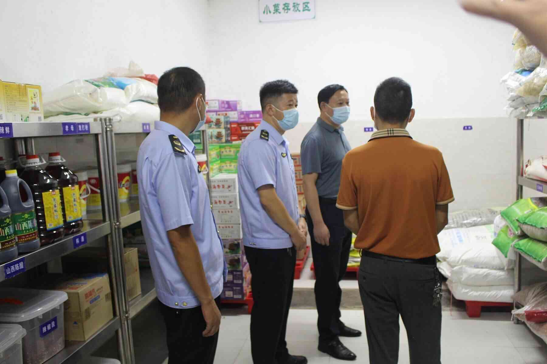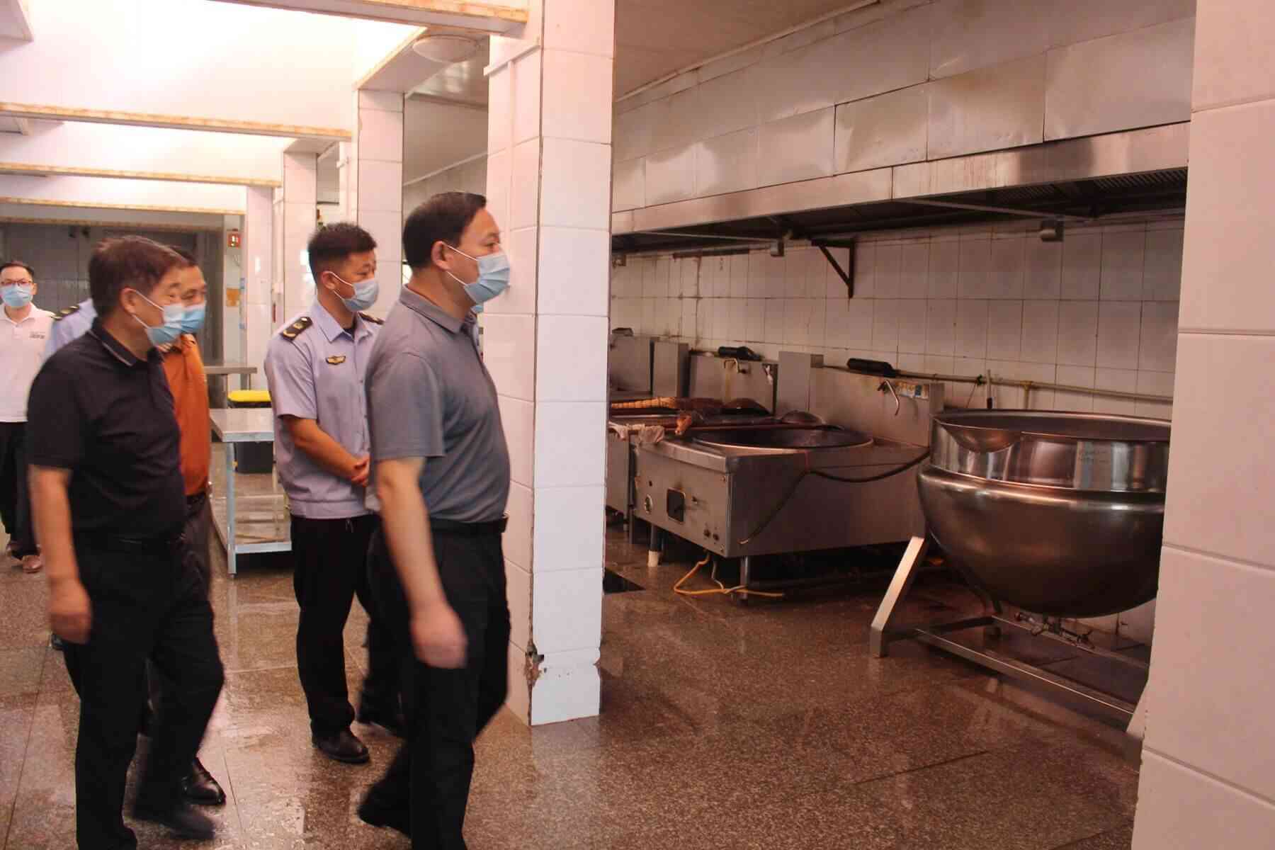 ~ 此次检查重点突出、目标明确,主要对食堂内库存清理、设施设备的消毒、清洗,食品原料进货、后厨加工制作、从业人员健康、食品安全制度等情况进行检查,同时督促相关负责人进一步加强对工作人员的关心帮助、测温扫码、核酸检查频次,及时对食品库房、冷藏(冻)柜内的过期食品原料进行清理等。