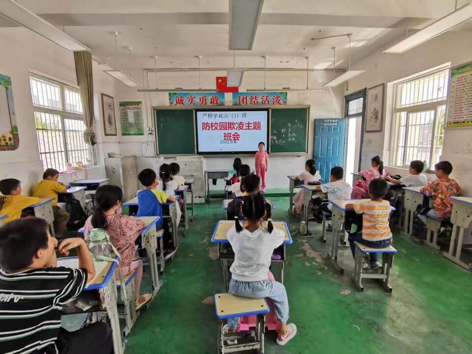 为了进一步构建平安和谐校园,防止校园欺凌事件的发生,增强学生的法制意识,预防校园暴力事件,提高同学们的安全防范意识和自我保护能力,9月6日,定远县严桥学校开展了以“防校园欺凌”为主题的班会活动。