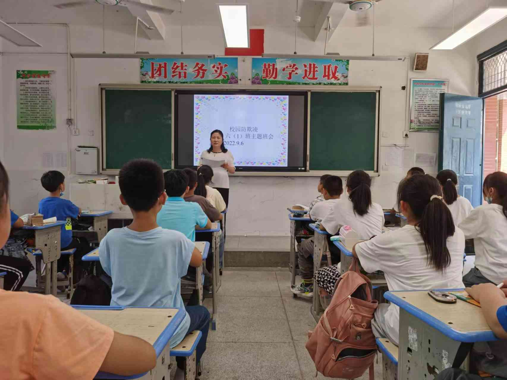 在主题班会课上,各班主任利用电子白板直观的展示了校园欺凌给受害者带来的伤害及严重后果,向学生讲解了有关校园欺凌、校园暴力的常识。学生的哪些行为是属于校园欺凌?校园欺凌会造成哪些危害?当遭遇校园欺凌、暴力时该如何应对等。