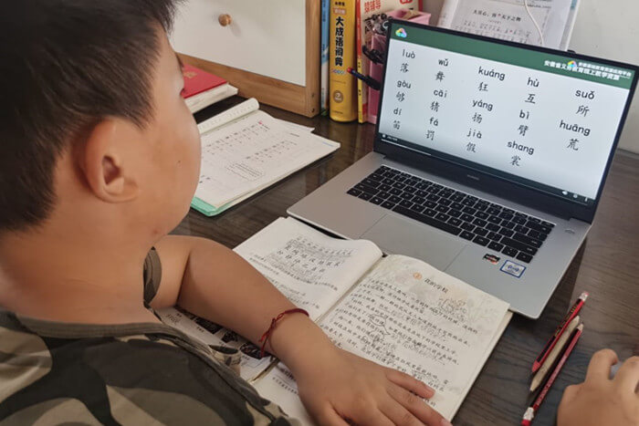 首先,该校迅速成立“线上教学”工作领导小组,明确工作职责,实行网格化管理,确保各项任务有布置、有落实、有检查、有成效,校长杜佐运任组长。线上教学课程除了语、数、外等学科外,还设置了体育、美术、音乐、家务劳动、科学、综合与实践等丰富课程,严格落实“双减”政策,艺体并进,促进孩子全面发展。接着,各年级组分别召开了线上视频会,认真组织落实。根据各年级、班级实际情况,制定了周密的线上教学方案。各年级老师就教学内容、上课时间、上课方式等进行了充分的讨论。通过详细规划,力求让每一个学生停课期间做到“宅”而不“慌”。紧接着,全体老师们热情响应并贯彻学校的部署安排,全面铺开“停课不停教不停学”的网上教学工作,将教学从三尺讲台转向电脑、手机屏幕,从粉笔黑板变为鼠标键盘,让课堂从融合走到了线上,将教室搬到了线上,用实际行动诠释着“不一样的课堂,同样的精彩”。真正做到停课不停学,防疫、教学两手抓。最后,该校积极整合优质资源,充分利用国家中小学智慧教育平台、皖教云教育资源平台等,结合本校实际,指导、推送给学生自主选学、自学。为全校学生提供便捷、优质的教育服务。