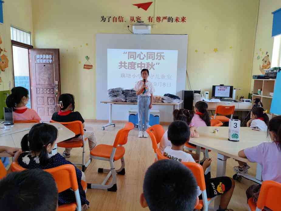 为切实开展关爱留守儿童工作,弥补孩子们不能和父母一起过节这一缺憾,同时也让孩子们深切感受到来自学校大家庭的温暖,2022年9月8日,在中秋佳节来临之际,定远县藕塘小学组织全体留守儿童开展关爱活动。本次活动主题为“携手相伴同心童乐”,活动由该校留守儿童之家管理员李伟伟主持。