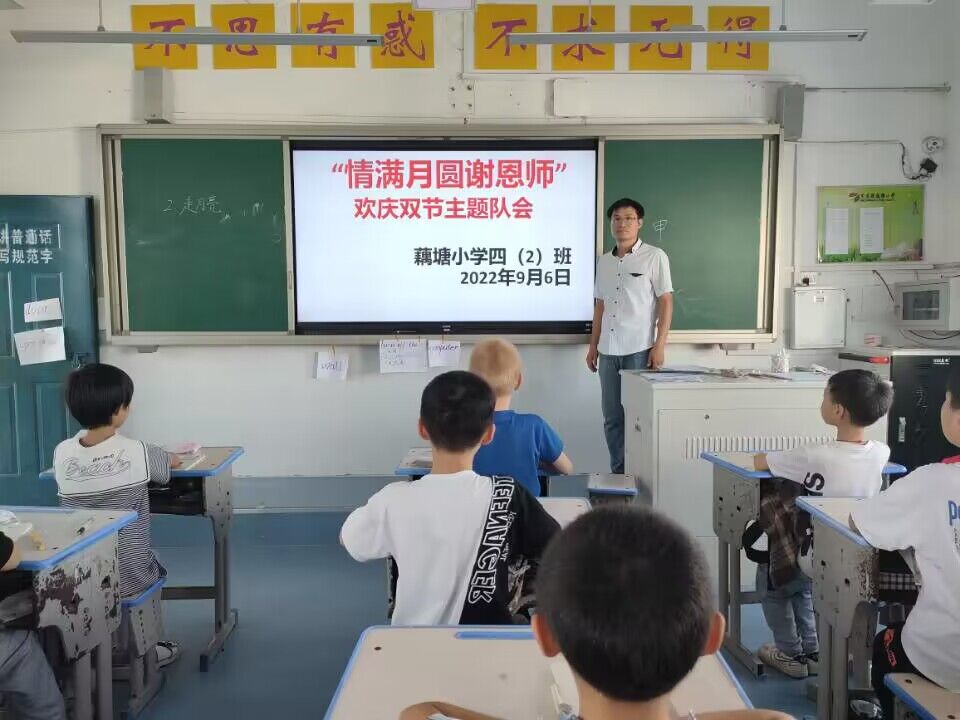 金秋九月,丹桂飘香,中秋节巧迎教师节,为弘扬传承中华优秀传统文化,丰富师生节日文化生活,同时引领学生尊师重教,用实际行动表达对教师的敬意,近日,值中秋节和教师节到来之际,定远县藕塘小学组织全体少先队员开展了以“情满月圆谢恩师”为主题的一系列庆祝活动。