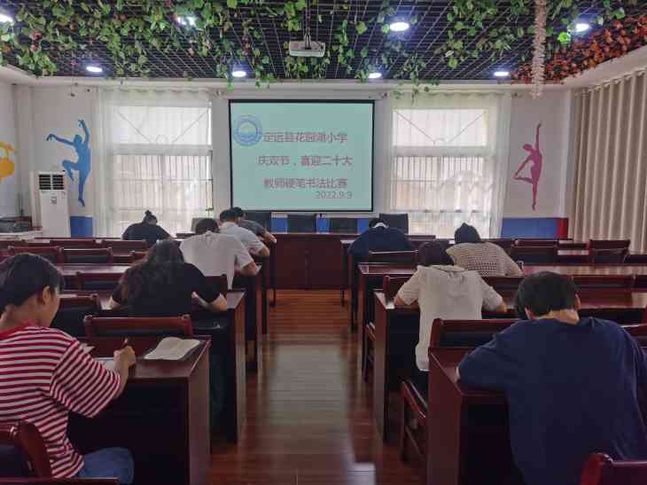 活动一:9月9日上午,学校举行“喜迎二十大 ”教师硬笔书法比赛。比赛现场,教师们使用统一的纸笔展开比拼,他们个个聚精会神,认真书写。所呈现的作品有的飘逸俊秀、苍劲有力,有的工整玲珑、娟秀大方,充分展现花园湖小学教师的基本技能和整体素质。