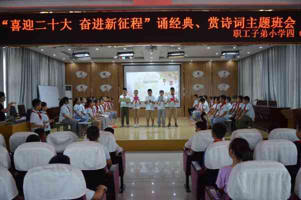 为进一步弘扬中华民族优秀传统文化,营造文明和谐的社会氛围,推进定远省级文明城市建设,9月13日下午,定远县职工子弟小学四一班在南四楼多功能教室举行了“喜迎二十大 奋进新征程”诵经典、赏诗词主题班会活动。